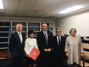 Following the deposit ceremony, Ambassador Amal Mudallali of Lebanon stated that: “Lebanon, who knows too well the pain and suffering that conflict and arms bring to humanity, is proud to become the 102nd State Party to the Arms Trade Treaty today. There are millions of people suffering from the consequences of unregulated trade in conventional arms around the world, and the Arms Trade Treaty gives hope to address this. We must work together to seize this historic opportunity and make the implementation of the Treaty a success.”