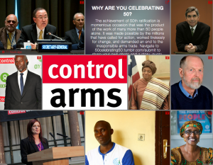 To mark this accomplishment Control Arms has launched a new webpage: 50 celebrating 50. The webpage features photos and quotes from 50 individuals from across civil society, government and the UN whose input was important in the securing of the ATT.