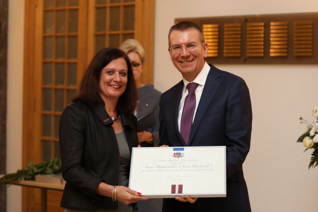 Anna Macdonald y el ministro Edgars Rinkēvičs. Crédito de la foto: Ministerio de Asuntos Exteriores de Letonia.